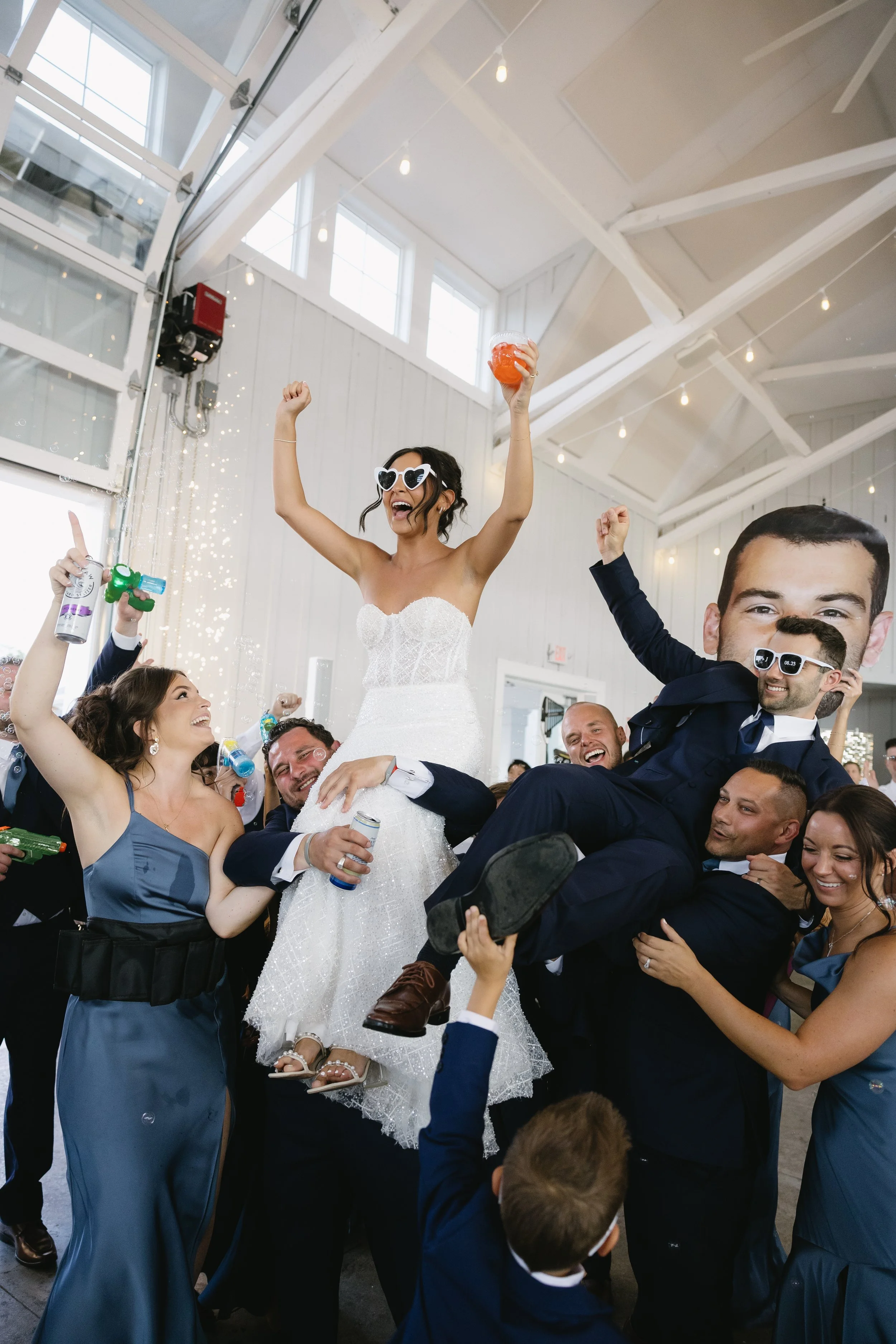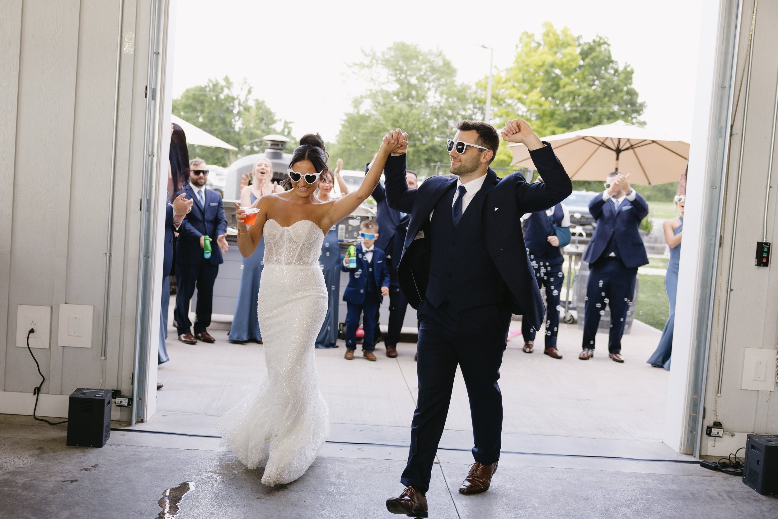 The reception energy was undeniable from the very start. Guests were welcomed with cold sparklers from Encore, and Jake and Ashley surprised everyone with a live saxophonist who played along with their introduction track. Dinner was served buffet-style by the venue and was a guest favorite. For dessert, the couple cut a small cake and offered bite-sized treats from Cheesy Eddie’s, which were quickly enjoyed.